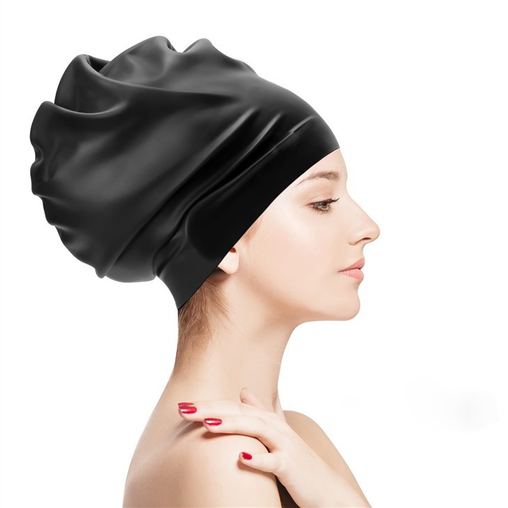 초대형 수영 모자를 만드는 데 사용되는 고품질의 오래 지속되는 실리콘은 방수성, 매우 탄력적이며 찢어지지 않는 장점이 있습니다. 최적의 핏을 위한 신축성이 간편하고, 착탈이 간편하며 반복 사용에도 변형되지 않습니다. 또한 실리콘은 독성이 없고 피부 친화적이며 아늑하고 안전하게 사용할 수 있습니다. 그것은 남녀 모두에게 부적절합니다.